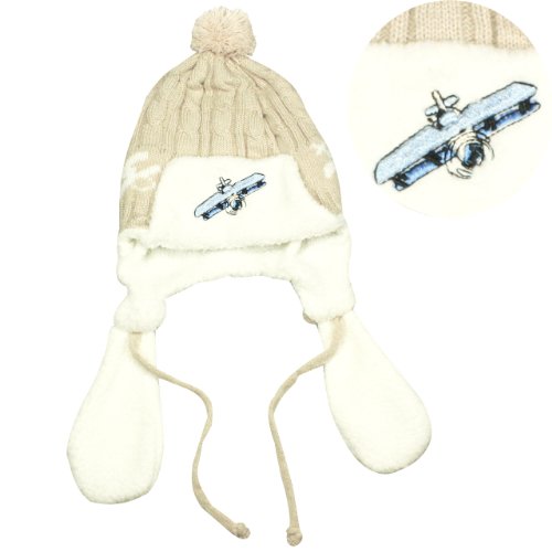 Boy's Acrylic Embroidered Pilot Cap Hat with Ear Flaps and Pompon - Tan Review