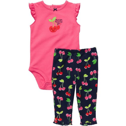 Carters Infant Girls Pink Cherry Print Bodysuit and Pants Set, 3 Months Review