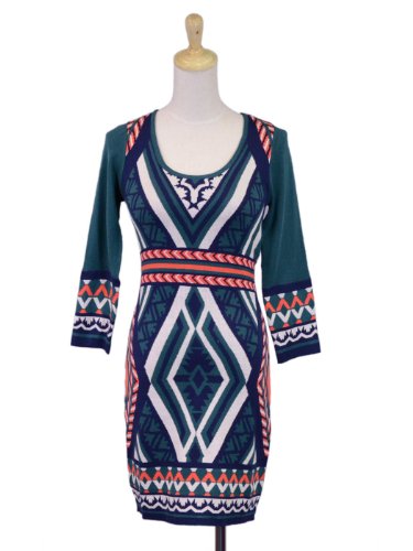 Flying Tomato Three Quarter Sleeve Multicolor Pattern Mid Length Sweater Dress Review