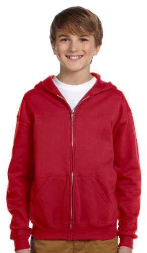 Jerzees Youth Full-Zip Fleece Hooded Sweatshirt, TRUE RED, X-Large Review