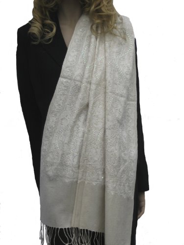 PASHMINA SHAWL/SCARF/WRAP WITH ALL OVER CREWEL EMBROIDERY (IVORY) Review