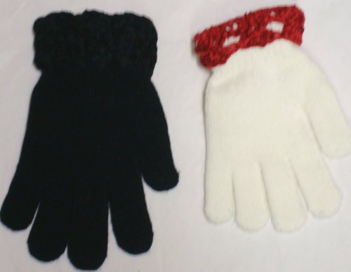 Set of Two Black and White One Size Magic Stretch Gloves Trimmed with Crocheted Chenille Cuffs for Toddlers Ages 1-5 Years Review