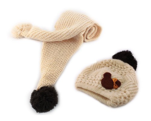 - Bear Baby Boy Girl Kids Children Earmuff Knitting Hat Cap W neckerchief Scarf Cream color