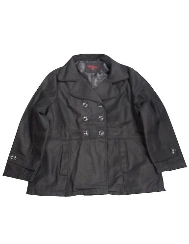 Black Lipstick - Plus Ladies Peacoat, Black, 3/4 Length, Double Breasted Button Front, Front Pockets, Back Pleat, Lined, 90% Polyester 10% Wool Lining 100% Polyester, Made in China, #32475 32-475