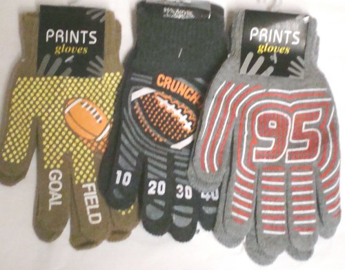 Set of Three Prints Fleece Polyester with Microfiber Lined Very Warm Boys Gloves